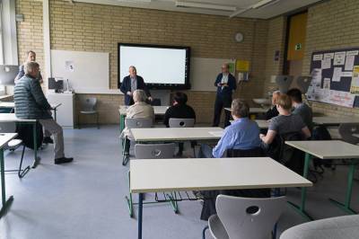 Letzte Woche haben wir die Auberlen-Realschule besucht und uns von Hochbauamtsleiter Lars Puhlmann und Konrektor Andreas Wersch von den Plänen zum Aus- und Umbau des Maicklerschulzentrums unterrichten lassen.