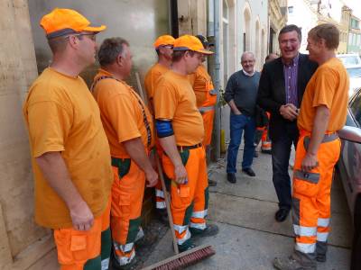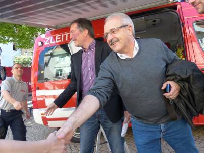 Christoph Palm und Harald Rienth in Meißen gegen Ende der Flut.