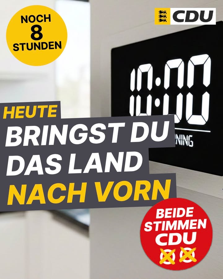 10:00 Uhr: Die Wahllokale sind noch 8 Stunden geöffnet. Bring Baden-Württemberg wieder nach vorne. Geh wählen