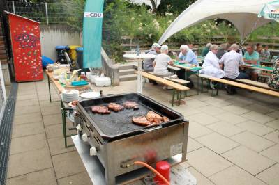 Gegen 17 Uhr wurde der Grill angeheizt. Zu Würstchen und Steaks wurden leckere Salate gereicht – ebenfalls von engagierten Mitgliedern beigesteuert. Vielen Dank an alle Spenderinnen und Spender!